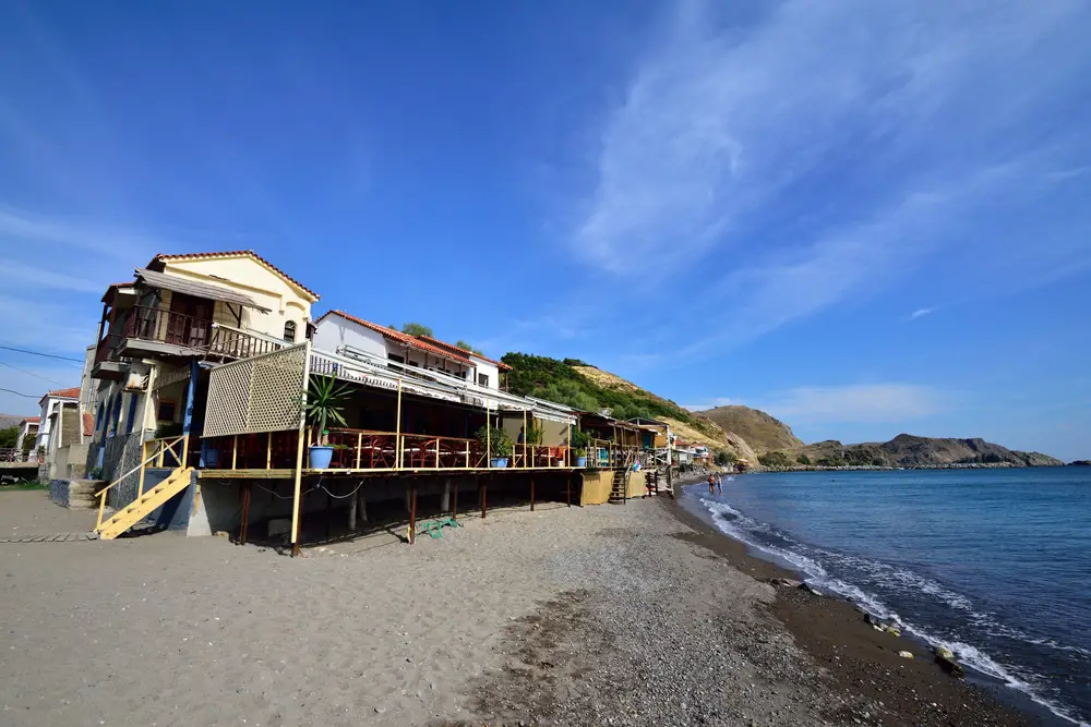 Al sur de Lesbos, en el pueblo de Plomari, se encuentra una playa paradisíaca amada por sus guijarros de mármol multicolores.