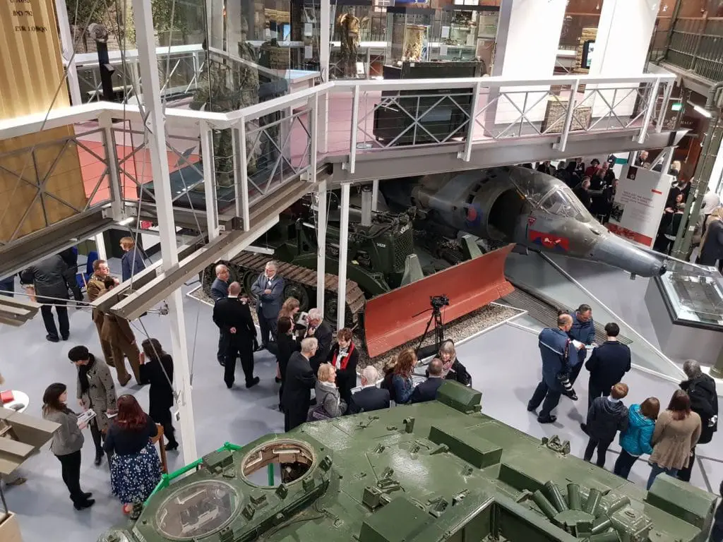 Hay un mapa utilizado por el duque de Wellington en la batalla de Waterloo, un cohete alemán V-2 de la Segunda Guerra Mundial, un Harrier Jump Jet, un torpedo Brennan y una pequeña flota de tanques puente.