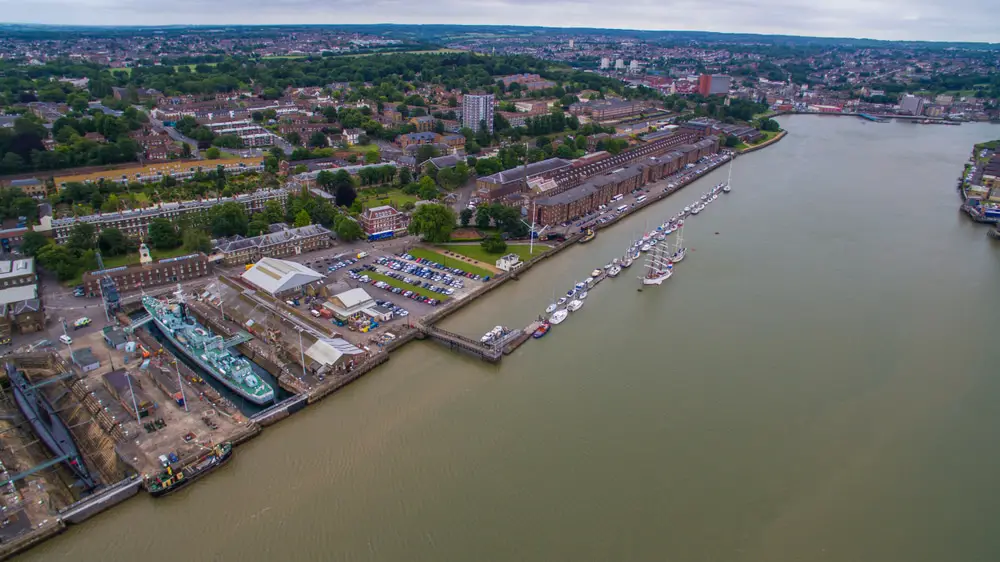 Justo a la orilla del río desde Rochester se encuentra Chatham, donde se encuentra un astillero de la Marina Real con casi 500 años de tradición en la construcción naval.