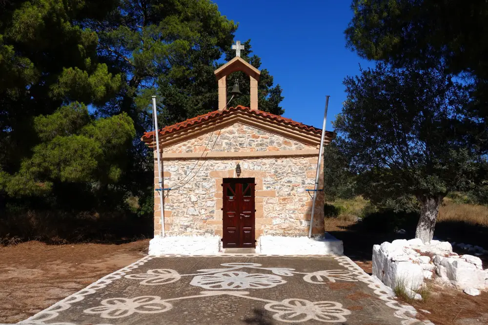 Allí se puede visitar la pequeña capilla Theodori y en las excursiones nocturnas se puede observar la puesta de sol sobre el Golfo Sarónico.