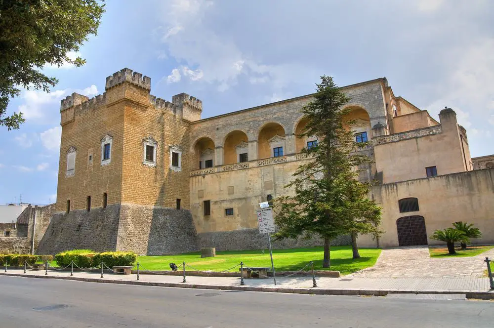 Edificios notables incluyen la Iglesia de San Giovanni Battista, la Iglesia de Santi Niccolo e Cataldo y el antiguo Anfiteatro Romano.