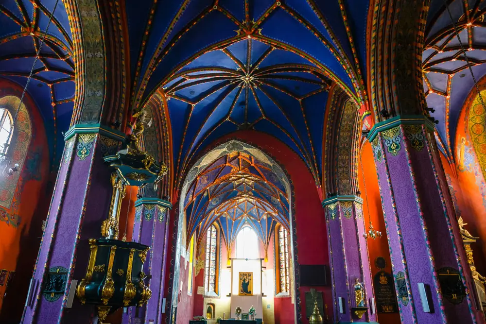Y cuando entras en el recinto, te sorprenderá la sinfonía de colores de las paredes y de las bóvedas, todo ello pintado con intrincados motivos a principios de la década de 1920 por Henryk Nostitz-Jackowski.