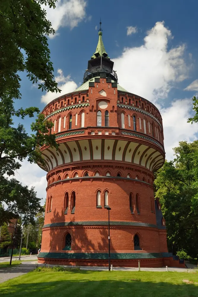 En un parque del distrito de Szwederowo hay una audaz torre de agua neogótica terminada en 1900 como parte del complejo de obras hidráulicas municipales.