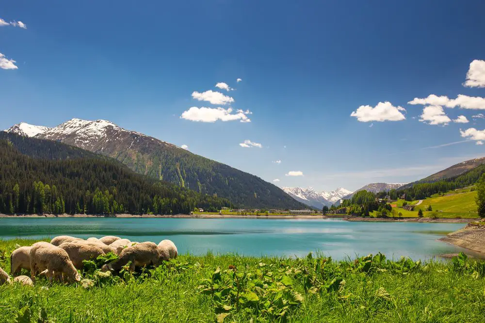En el límite noreste de la ciudad se encuentra el lago Davos, bordeado por empinados pastos y bosques.