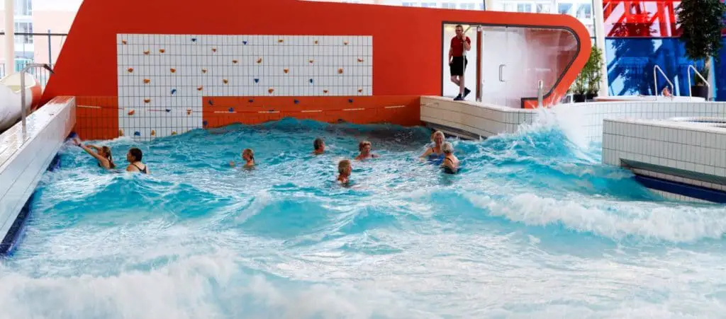 En el interior hay una piscina olímpica de 50 metros, donde los nadadores de fitness pueden obtener sus vueltas, lejos del caos de la piscina de olas, que tiene un muro de escalada y un "canal de poder". Junto con las piscinas hay un gimnasio bien equipado y un área de bienestar en el segundo piso, con jacuzzis, sauna, baño de vapor y restaurante.