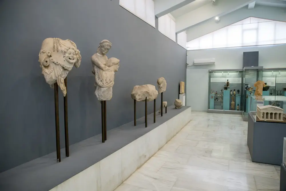 Una de las muchas esculturas dignas de mención es una representación dañada de Teseo y Antiope, una obra del siglo VI, posiblemente del aclamado escultor ateniense Antenor.