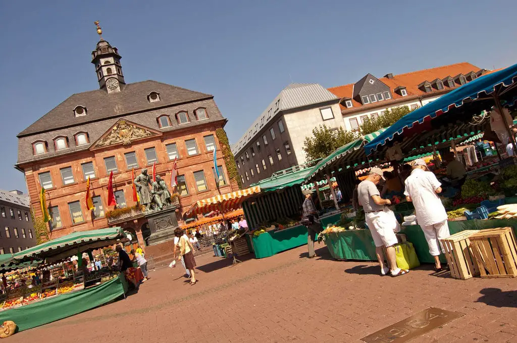 La gente viajará desde Frankfurt y Offenbach hasta el mercado al aire libre de Hanau, que se comercializa desde 1597. El Wochenmarkt está abierto a los negocios todos los miércoles y sábados por la mañana al pie del monumento de los hermanos Grimm.