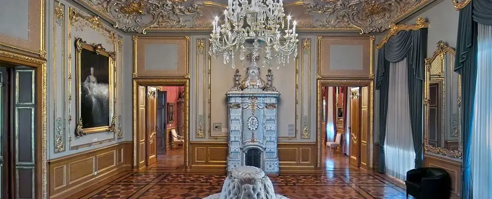 Los interiores de Wilhelmine son más nuevos, datan de la década de 1870 cuando fueron reelaborados por el Príncipe Frederick William.