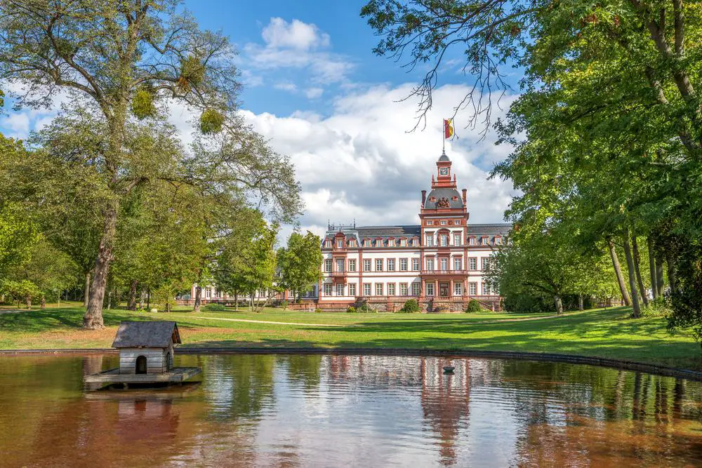 Este palacio barroco principesco en el Main fue encargado por Philipp Reinhard, conde de Hanau-Münzenberg a principios del siglo XVIII.