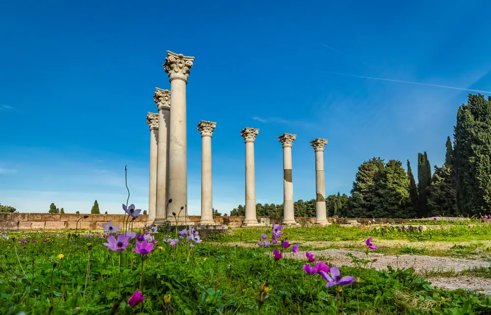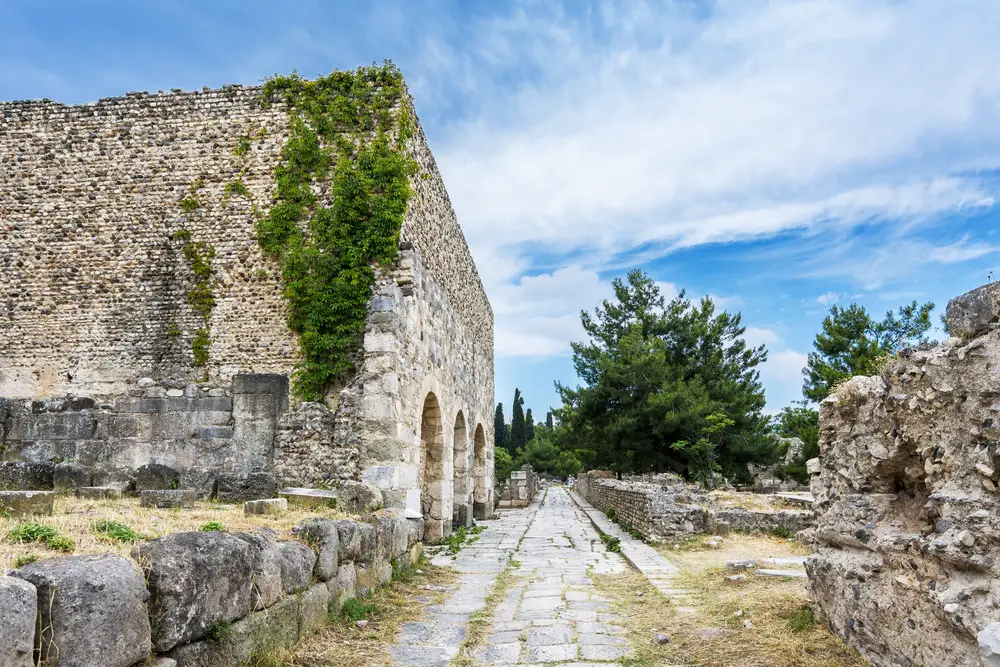 También hay dos basílicas paleocristianas, un estadio del siglo II a.C. y un gimnasio de la misma época con 17 columnas de mármol blanco.