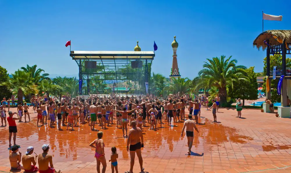 Muchos de los paseos involucran balsas inflables, y no hay escasez de piscinas y toboganes para los más pequeños que buscan emociones.