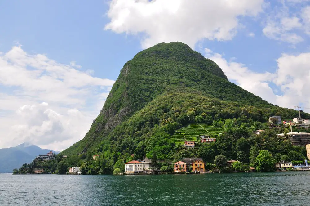 La propia montaña de Lugano y un monolito en el horizonte sur, Monte San Salvatore se encuentra a más de 900 metros.