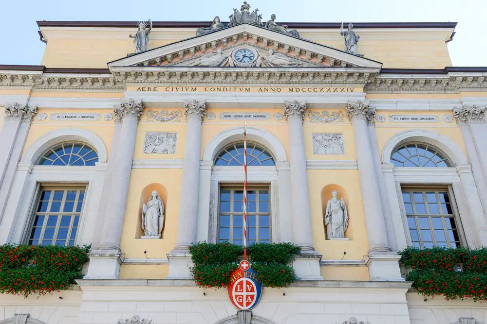 La fachada principal de la catedral renacentista de Lugano es un verdadero tesoro, tallado en piedra caliza blanca y mármol de Carrara.