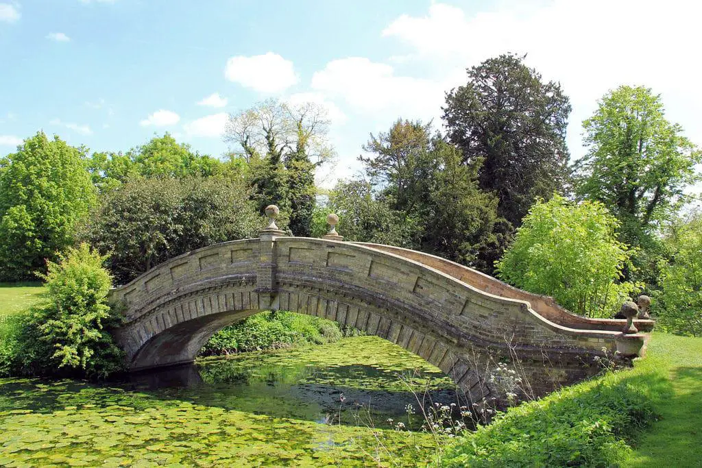 Más de 40 esculturas adornan los jardines, y hay más monumentos como una Casa Verde Bowling del siglo XVIII, un puente adornado y un templo chino.