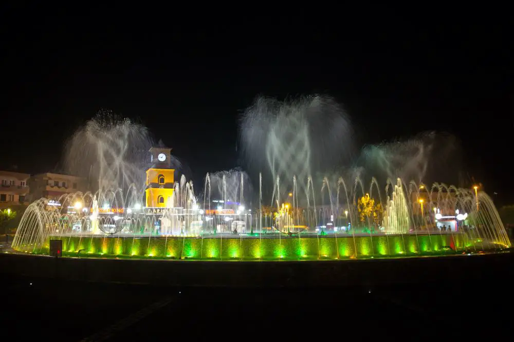 Esto tiene dos cuencas y atrae a las multitudes a las 21:00 y 22:00 en la temporada alta cuando hay un espectáculo automatizado de luz y música.
