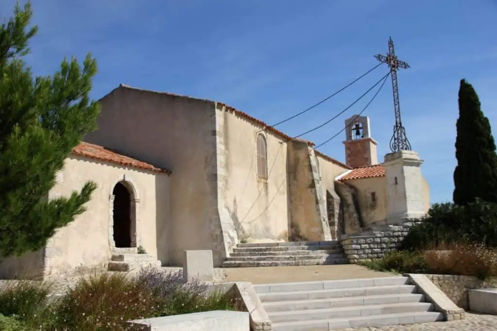 Arriba, retorciendo pistas a través del bosque mediterráneo, una capilla ha sido un lugar de peregrinación para los residentes de Martigues desde el siglo XVII.