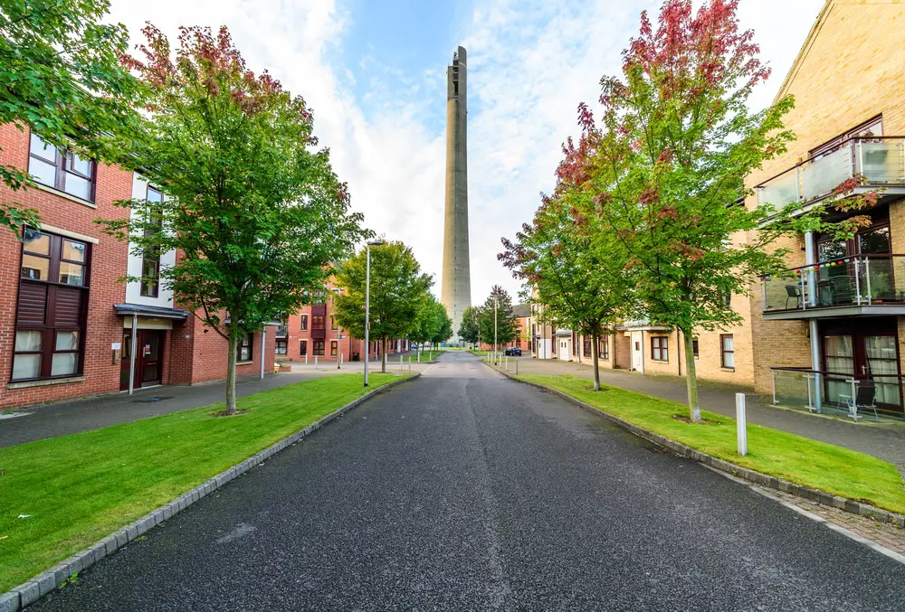 Con 127,5 metros de altura, es una de las dos torres de prueba de ascensores de Europa y fue coronada en 1982 e inaugurada por la Reina.