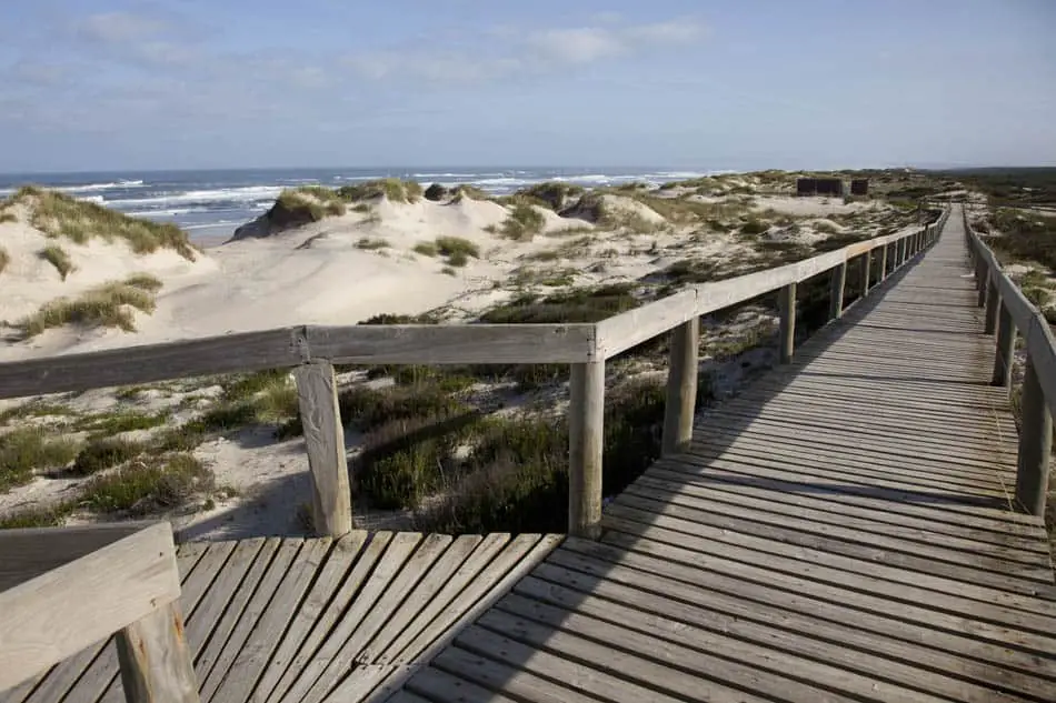 Y al igual que su vecino del sur, fue plantado a instancias de los reyes Afonso III y Denis I en la Edad Media para proteger las tierras de cultivo de la llanura de las dunas que se alejan de la costa.