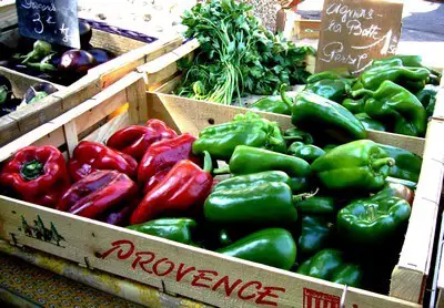 Esta es la escena del gran mercado semanal, que está lleno de puestos que venden todas las especialidades de Provenza.