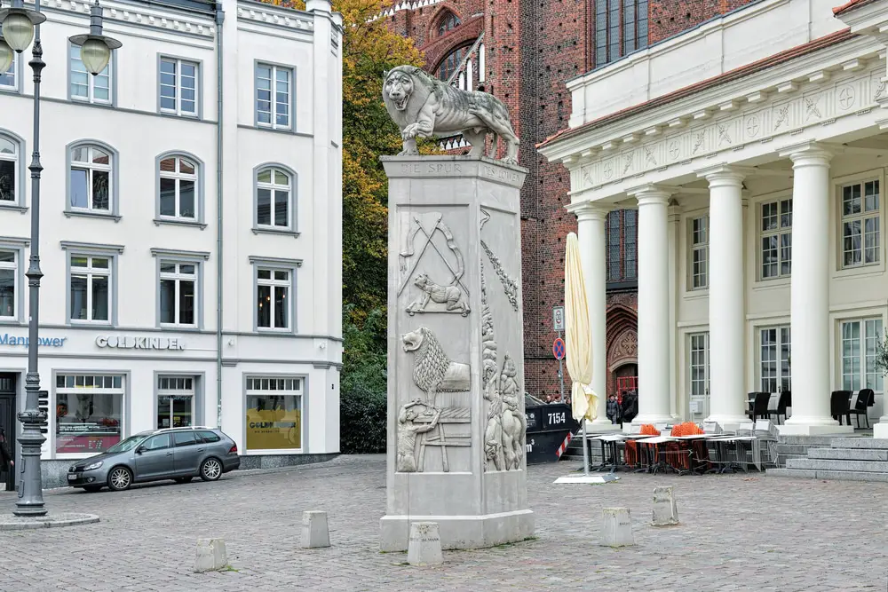 Hay un homenaje al fundador de la ciudad, Enrique el León, en la plaza del mercado junto a la Neues Gebäude.