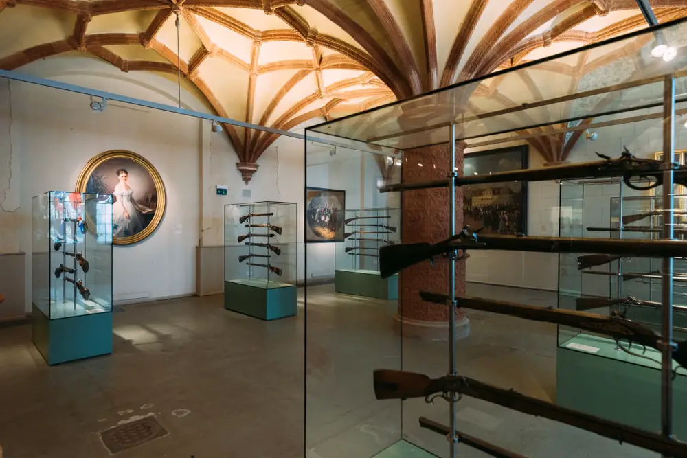 En salones de baile y apartamentos privados exquisitamente amueblados no tendrá ninguna duda sobre la riqueza de los duques que vivieron aquí... Podrá observar pinturas, porcelana, armaduras ceremoniales, armas de caza, espadas, esculturas de animales y cubiertos de plata.