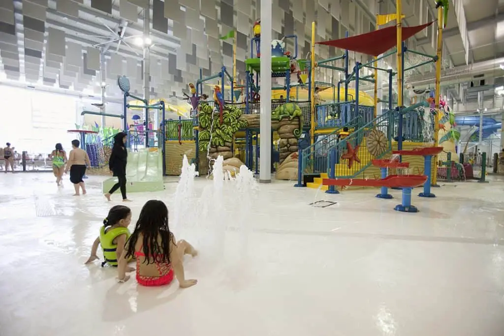 Las personas de todas las edades pueden disfrutar de los cinco toboganes acuáticos del parque acuático, el simulador de surf, la piscina de olas y el río perezoso. También hay un área seca donde los niños pueden jugar en un patio gigante de tres niveles.