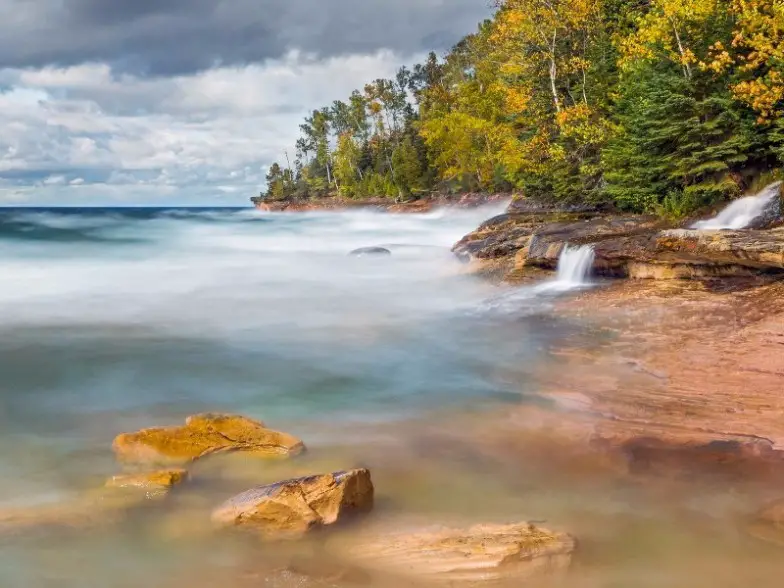 Upper Peninsula no atrae a grandes multitudes y tampoco hará demasiado calor, perfecto para paseos tranquilos por senderos cubiertos de musgo o remar Pictured Rocks, un tramo de 42 millas de la costa del lago Superior con dunas de arena, cascadas y acantilados de arenisca multicolor. Base su estadía en Marquette para disfrutar de Presque Isle Park con senderos para caminatas y una hermosa playa para tomar el sol y nadar.