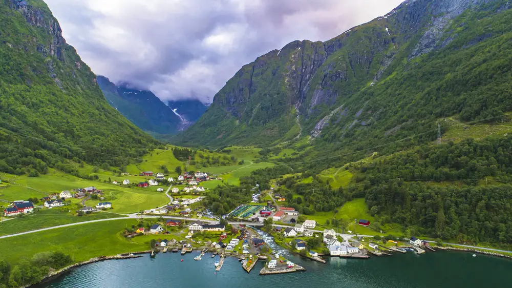 El pueblo de Sundal se encuentra en un valle profundo rodeado de montañas empinadas; las vistas son magníficas.