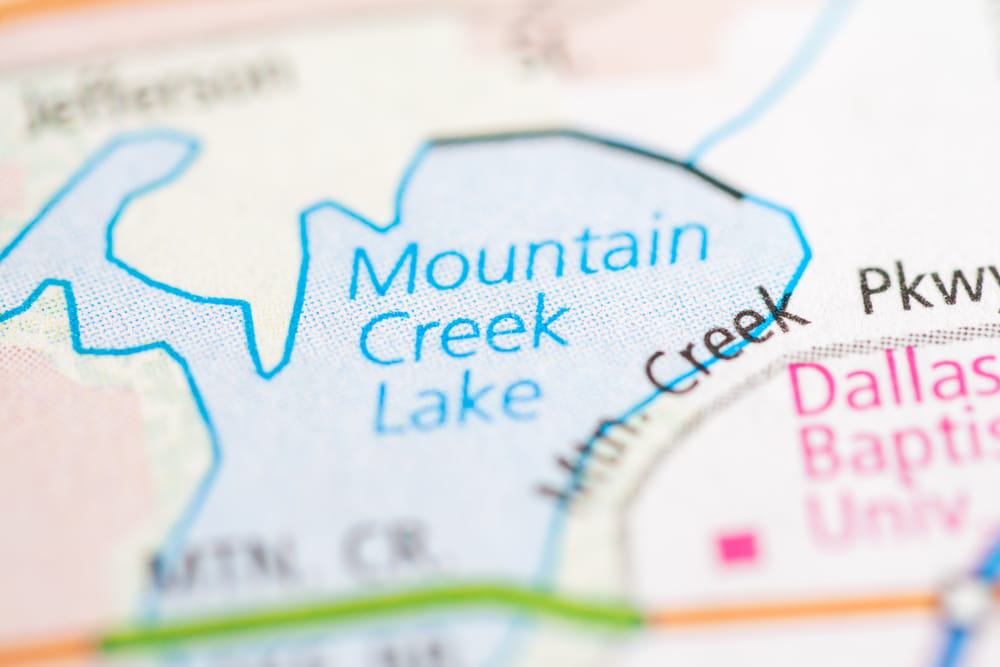 Ubicado a solo 13 kilómetros al suroeste del centro de Dallas, este embalse de 1.097 hectáreas. Mountain Creek Lake se construyó originalmente como un depósito de enfriamiento para una planta de energía eléctrica, pero hoy se usa para recreación.