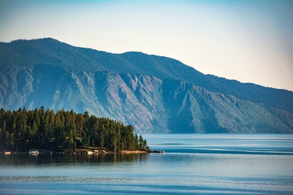El lago más grande de Idaho está rodeado de bosques nacionales, lo que lo hace extremadamente pintoresco. El lago de 38,000 hectáreas también es el quinto lago más profundo del país, con agua limpia y paisajes magníficos.