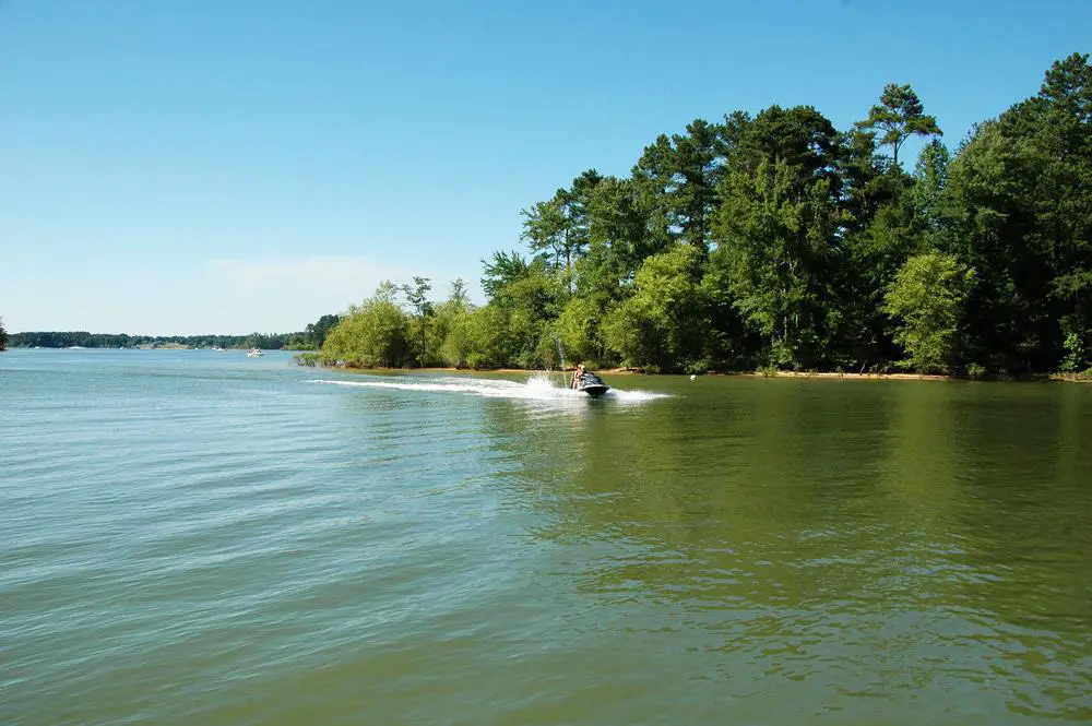 El lago de 53,000 hectáreas está dividido en dos lados; privado y público. El lado público es más grande y presenta varios puertos deportivos y rampas para botes, y está particularmente ocupado en el verano.