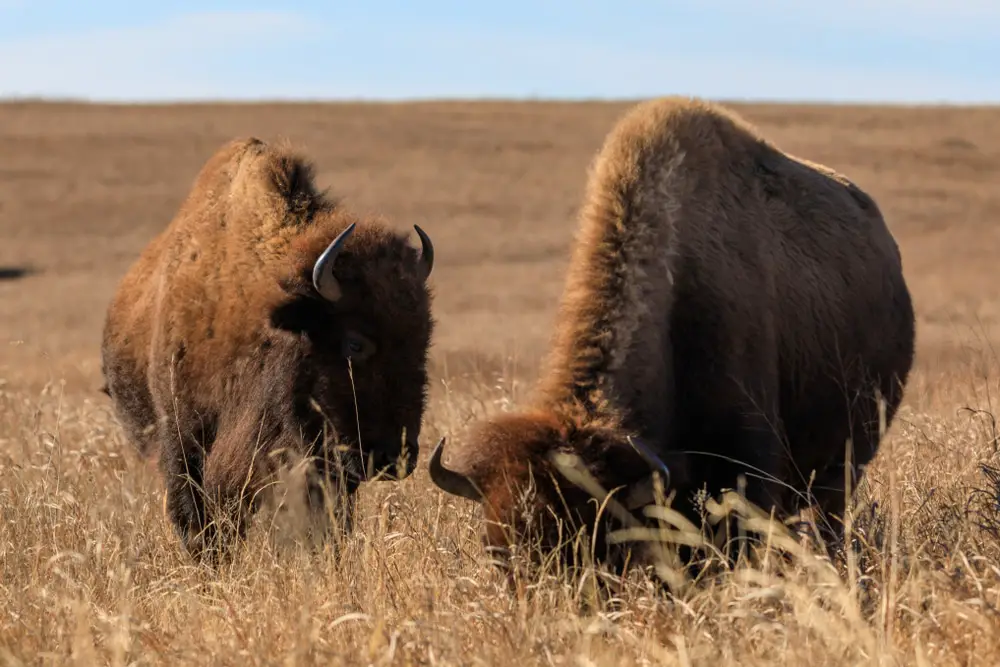 Tendrá la oportunidad de ver a Bisonte en la Reserva de la Pradera de Tall Grass antes de dirigirse a la ciudad en busca de un bocado para comer.