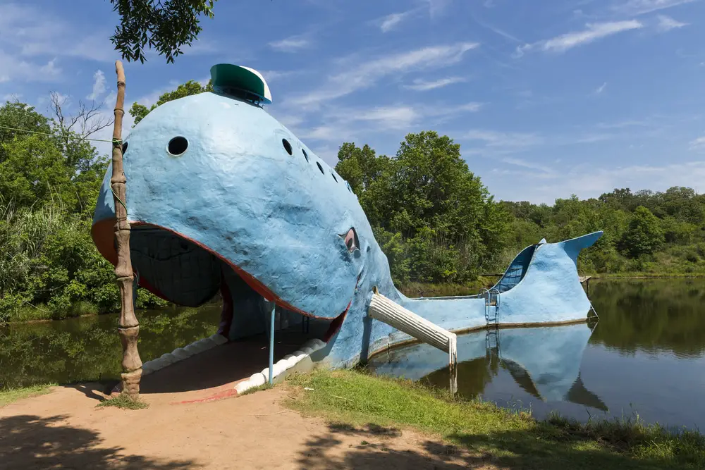 La ballena azul es una enorme estructura costera que toma la forma de un enorme cachalote.