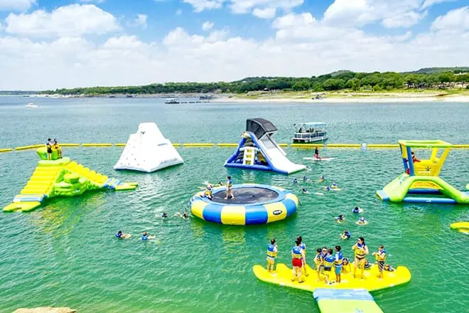 Por qué tienes que ir: una de las mejores cosas para hacer en Texas con niños es visitar este hermoso lago con un parque acuático en el lugar llamado Beachside Billy's.