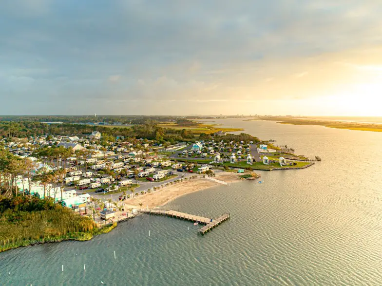 Las vacaciones y las escapadas de fin de semana son divertidas cuando reserva un lugar para acampar en BayShore Campground , que se encuentra a tres millas de East Neck Island y también a tres millas de la ciudad de Rock Hall. Estarás cerca de senderos naturales, restaurantes para observar aves, tiendas y un puerto deportivo cuando te hospedes aquí. El campamento se encuentra justo a lo largo de la bahía para brindarle hermosas vistas al atardecer. Aquí hay conexiones eléctricas de 30/50 amperios, así como una rampa para botes, área de juegos para niños, canchas deportivas, estaciones de descarga, baños con duchas y leña. Este es un campamento que admite mascotas en Maryland.