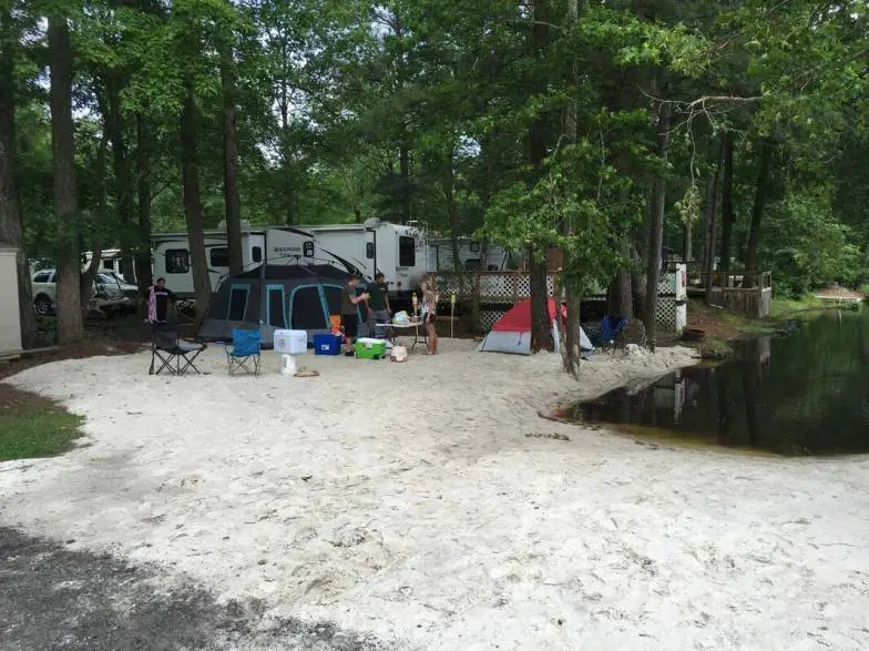 Ramblin' Pines Campground ofrece 200 campamentos para vehículos recreativos, la mayoría de los cuales tienen conexiones completas. Estos sitios tienen televisión por cable y espacio para acomodar deslizables. También hay cabañas para acampar disponibles para alquilar aquí, pero las cabañas no admiten mascotas. La gente disfruta de este campamento por su entorno rural y boscoso que también está cerca de las atracciones urbanas. El campamento organiza eventos divertidos los fines de semana, días festivos y en verano. Encontrarás una lista de actividades ordenadas por fecha en la web del camping. Otras ventajas de hospedarse aquí son la piscina, el gimnasio, la sala de juegos, el parque para perros, las instalaciones de lavandería, la almohada para saltar y la pesca de captura y liberación.