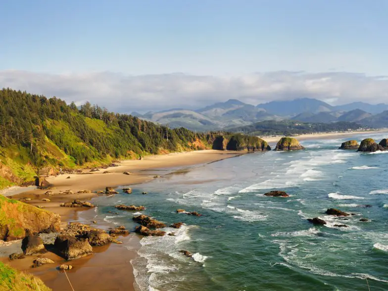 Caminar por la escarpada costa de Oregón, uno de los tramos de costa más impresionantes , garantiza vistas inolvidables, especialmente en un día soleado, y esta caminata virtual en Indian Beach Trail es una de las mejores. Ubicado justo al norte de Cannon Beach en Ecola State Park, caminarás a través de imponentes árboles Sitka Spruce, helechos y otras zonas verdes, y a lo largo de la costa, disfrutando de deslumbrantes vistas de las formaciones rocosas, incluida la icónica Haystack Rock, que se eleva desde el Pacífico. . Hay vistas asombrosas en cada esquina.