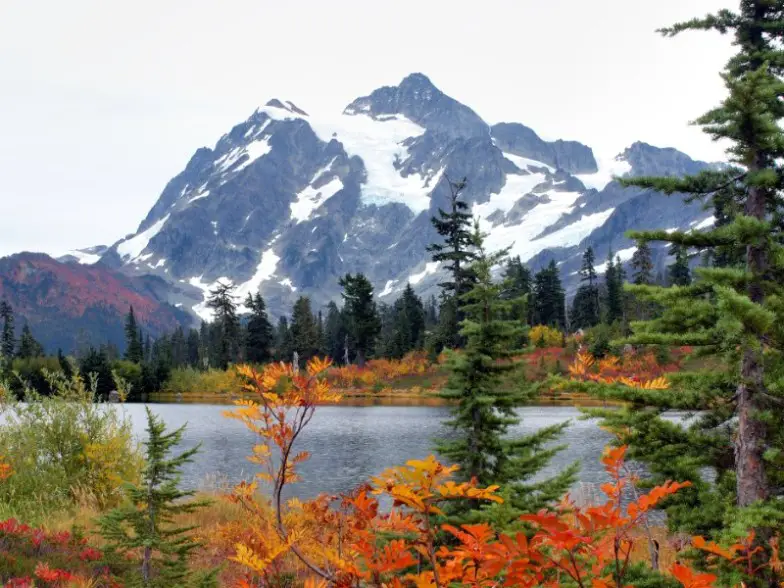 El área de Mount Baker en el norte del estado de Washington ofrece impresionantes vistas de las montañas y el lago que son aún más impresionantes en el otoño, resaltadas con vibrantes tonos rojos, dorados y anaranjados. Esta caminata virtual durante la temporada de otoño lo llevará a lo largo de Baker River Trail y Chain Lake Trail a través del bosque esmeralda, el hermoso follaje, los espectaculares picos de las montañas y los lagos cristalinos. El sendero lo llevará cerca del río antes de abrirse a magníficas vistas, con los sonidos del agua y los cantos de los pájaros.