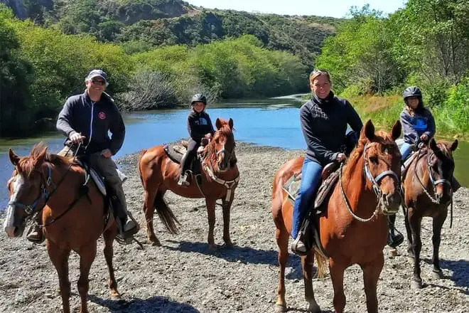 Chanslor Stables es un rancho de caballos de servicio completo que lleva buckaroos y buckarettes a los paseos a caballo por los senderos costeros más hermosos.