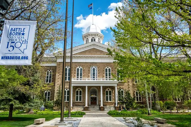 El edificio del capitolio del estado de Nevada, construido en 1870, se encuentra en el corazón de Carson City. Tiene una arquitectura impresionante, similar a un campus.