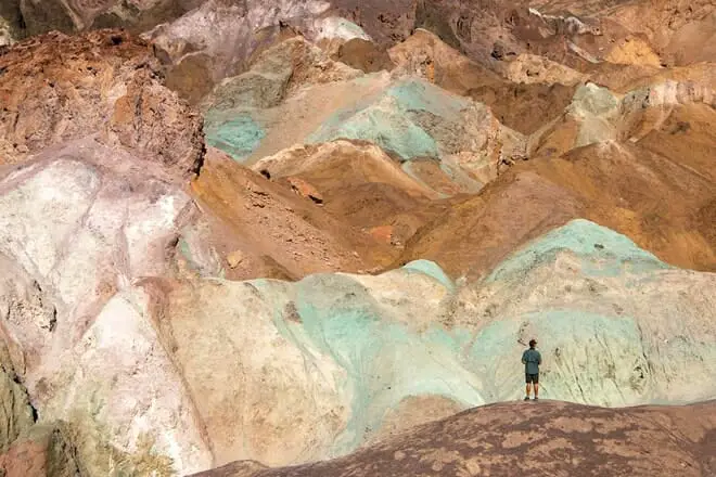 Entre las mejores cosas para ver en el Valle de la Muerte se encuentran los colores místicos y similares al arcoíris que salpican las colinas en este lugar. Los tonos del arcoíris, del rojo al verde, estaban hechos de óxidos de hierro y clorito.