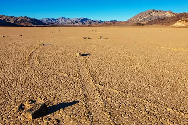 Suponga que busca lugares inusuales para visitar en el Valle de la Muerte. En ese caso, este lago seco es la mejor opción debido a sus marcas hexagonales únicas y sus misteriosas piedras en movimiento.