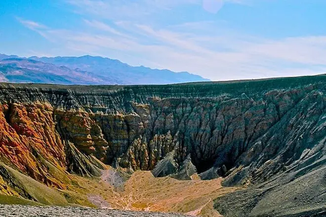 El cráter Ubehebe es un cráter volcánico que tiene unos 600 pies de profundidad.