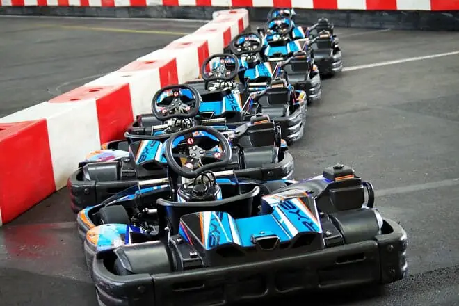 Por ejemplo, pasar un momento emocionante en el agua mientras monta en botes chocones o camina y rueda en bolas de agua, busca piedras preciosas, compite entre sí en karts, juega minigolf, se eleva muchos pies en el aire en trampolines bungee, y así.
