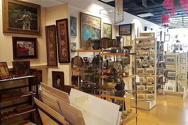 Cuenta con exhibiciones rotativas que representan diversas formas de obras de arte y una tienda que vende una amplia gama de artículos únicos.