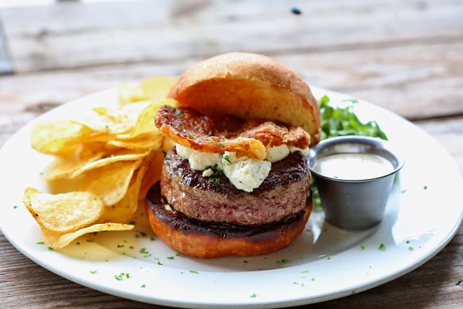 Pruebe sus hamburguesas y jugosos bistecs wagyu con una guarnición de papas fritas frescas cortadas a mano. También te encantarán sus ensaladas, sándwiches y pizzas caseras.