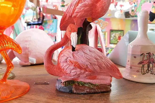 Explore el museo y vea una miríada de recuerdos, carteles y juguetes de flamencos rosados maravillosamente extraños.