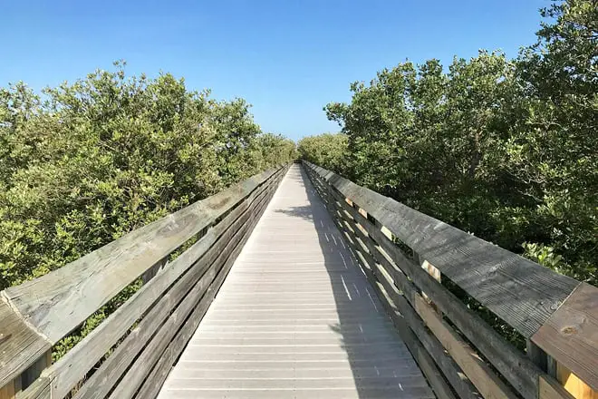 El sendero natural Laguna Madre es un paseo marítimo de 1,500 pies a lo largo de 4 acres de tierra cerca del Centro de Convenciones de South Padre Island.