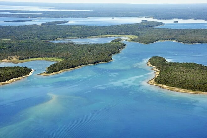 Las islas Les Cheneaux, ubicadas a orillas del lago Huron, constan de 36 islas pequeñas. Es un destino muy conocido para diversas actividades relacionadas con el agua.