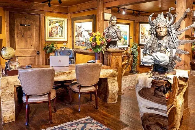 Tómese su tiempo para explorar el primer y segundo piso de esta galería de arte. Su arte no es solo lo que hay en los marcos o en los pedestales, ya que incluso los muebles de madera son obras de arte exquisitas por sí mismos.